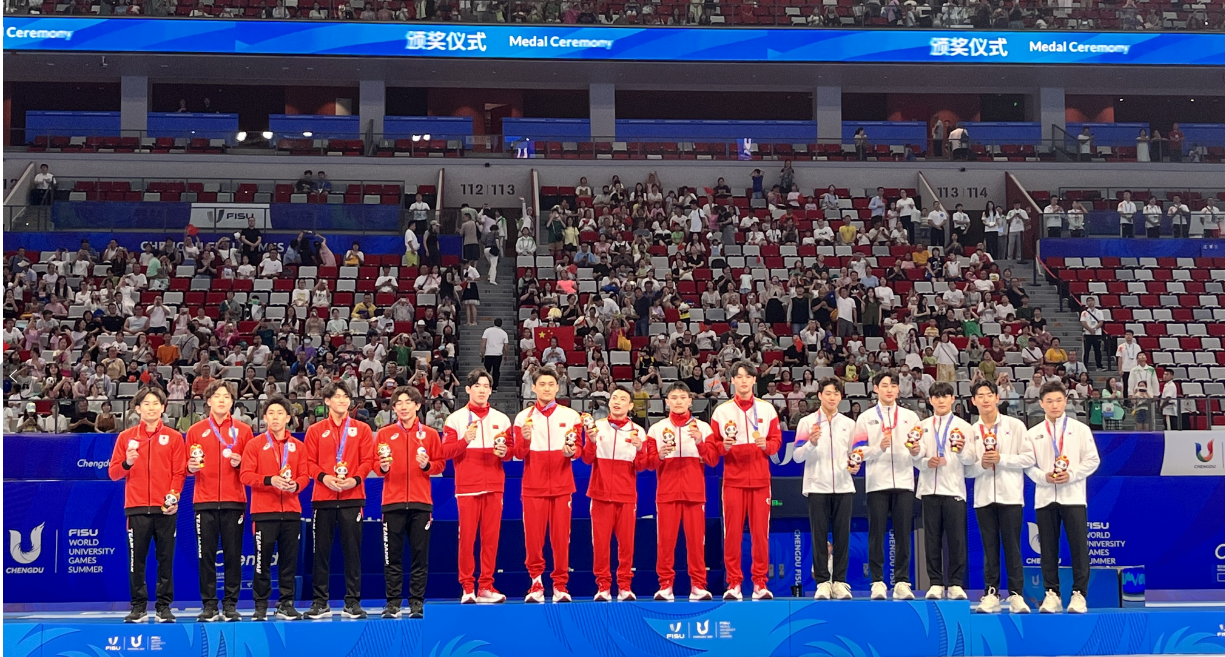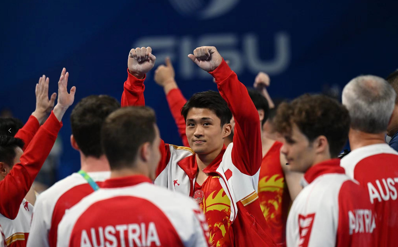 经过两天的激烈角逐,世界大学生运动会体操项目男子团体决赛于8月2日在四川省成都落下帷幕。体操队优秀运动员侍聪与队友张博恒、兰星宇、苏炜德、邹敬园通力合作,代表中国队以总分262.954分战胜日本队获得男子团体冠军,韩国队获得第三名。