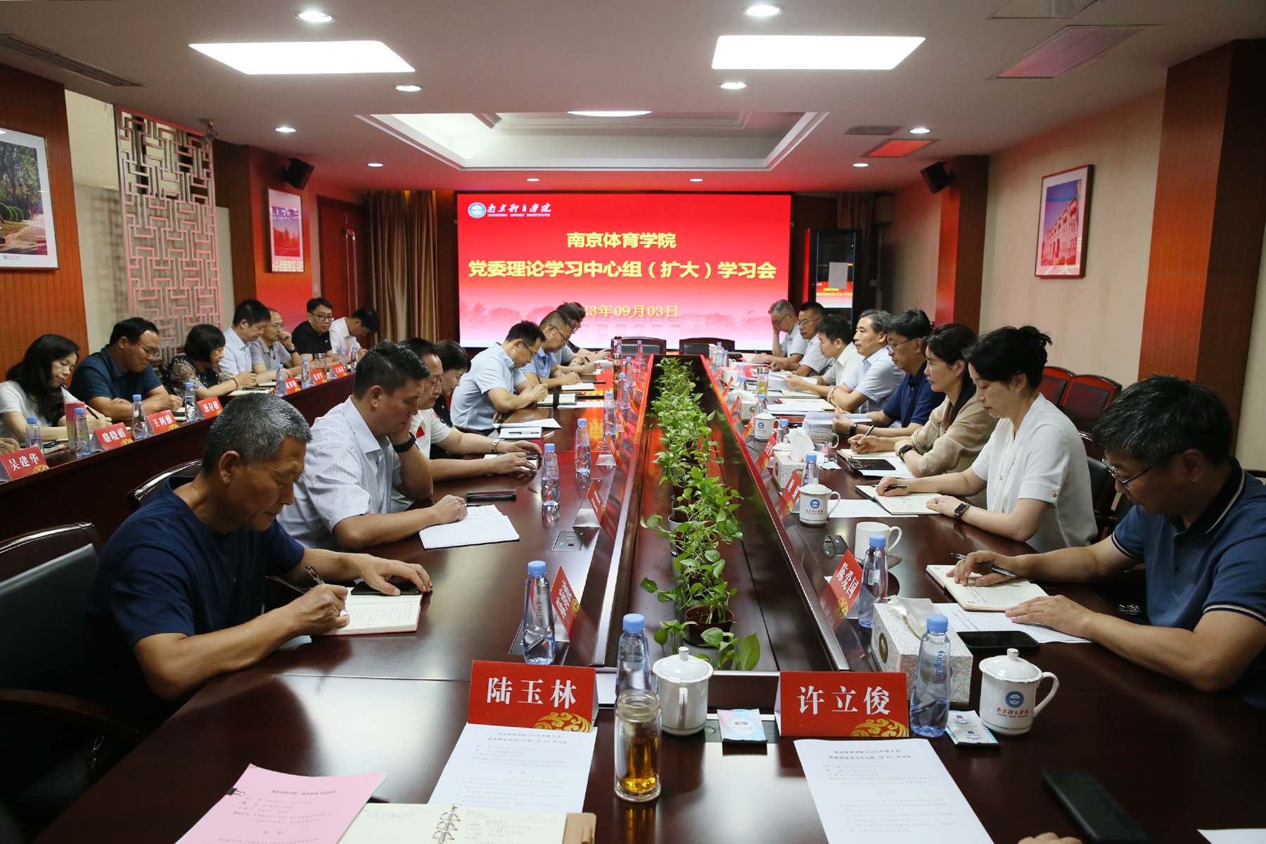 9月3日上午,校党委理论学习中心组(扩大)召开学习会,深入学习习近平总书记关于党的建设的重要思想。党委书记刘红明主持会议,领学习近平总书记重要讲话和重要指示精神并讲话。党委副书记、校长杨国庆出席会议。党委副书记兰亚明传达学习全国、全省组织工作会议精神。