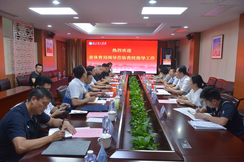 杨国庆代表学校对张海涛一行的到访表示热烈欢迎,对省体育局长期以来对学校建设发展的大力支持表示衷心感谢。他简要介绍了学校的地理位置、历史沿革与文化渊源、办学办队概况。他表示,学校将高度重视省属体育协会工作,希望省体育局能够一如既往地关心、支持学校的建设与发展,给予多方面政策支持,助力学校事业高质量发展。