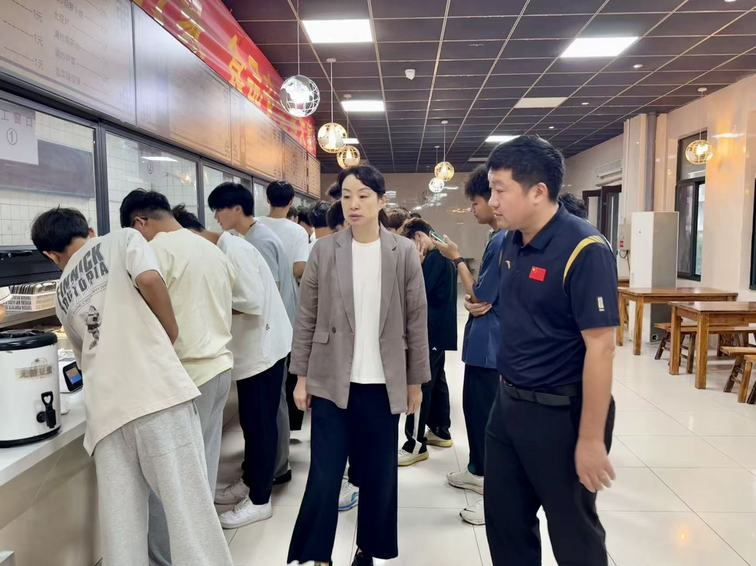 随后,鲍勤等人先后走访学生宿舍和学生食堂,仔细检查室内卫生、物品摆放与安全设施,深入了解辅导员值班情况及物业值班室监控系统运行状况,实地查看早餐供应与就餐秩序情况。