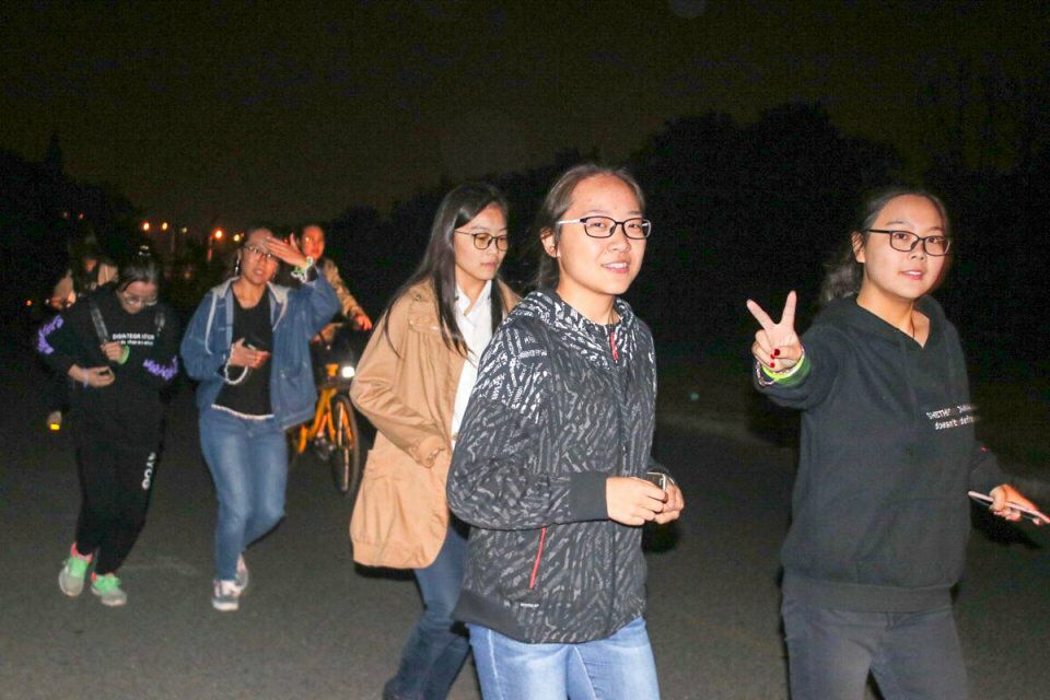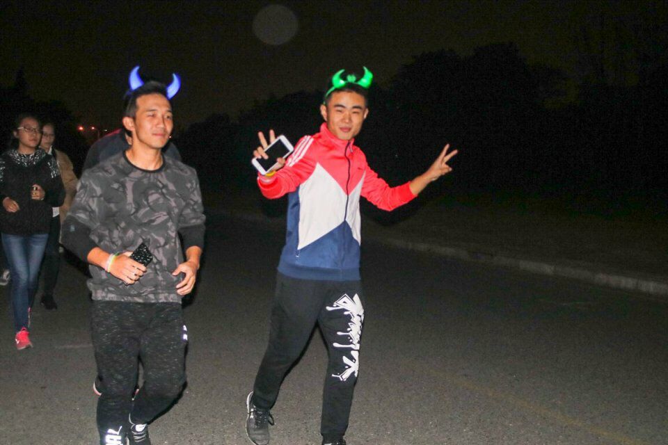 学生在荧光夜跑活动中