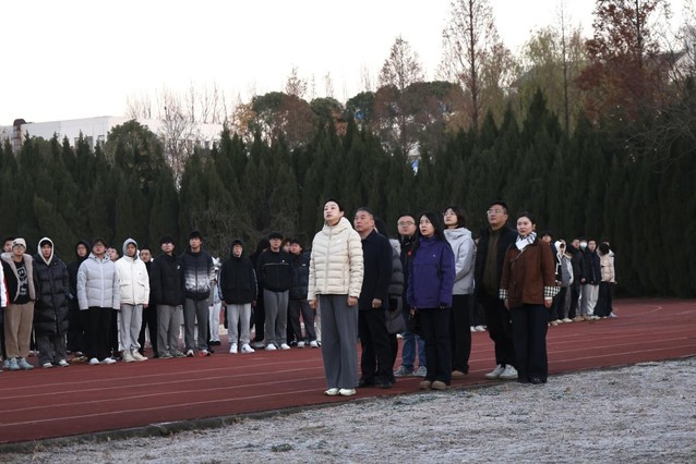 为促进学生德智体美劳全面发展,鼓励学生积极锻炼身体、振奋精神风貌,12月15日清晨,学工处组织的2025年大学生早操评比活动在灵谷寺校区与仙林校区同步启动。校党委副书记、校长吴兵成,党委常委、副校长鲍勤分别赴两校区进行现场指导,学工处、教务处、团委相关负责人组成评审团参与现场打分,各二级学院主要负责人、党总支副书记、新生辅导员及班主任齐聚操场,共同组织并见证这一充满活力的时刻。