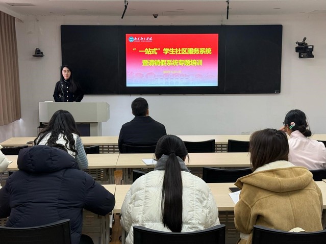 为推动“一站式”学生社区服务系统深度落地,充分发挥数智化工具在学生工作中的赋能作用,切实提升辅导员队伍的系统应用能力与育人实效,我校于12月12日下午成功举办“一站式”学生社区服务系统暨请销假系统专题培训。学工处处长丁永亮、副处长杨蓉、相关科室工作人员及全体辅导员参加培训,系统技术支持团队全程提供保障与服务。