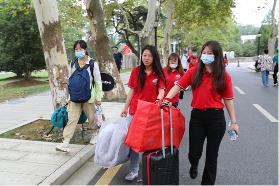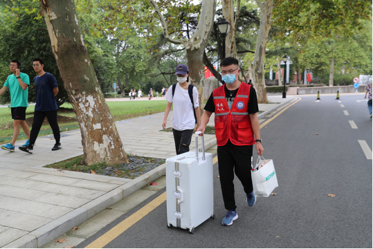 志愿服务,热情高效。为做好新生报到接站工作,校团委组织学生志愿者在南京南站、南京站、小红山汽车客运站的接站点迎接新生,引导新生乘坐专车到达相应校区。在两校区门口的迎新点,学校准备了接驳车和小推车协助搬运行李,各二级学院和研究生部安排了迎新志愿者,帮助新生搬运行李、引导新生办理报到手续,有序完成报到工作。志愿者们认真细致,热情周到,以饱满昂扬的风貌投入到迎新工作之中,认真做好家长引导、学生安检、行李搬运等工作,以最快速度帮助新生成为正式的南体人。