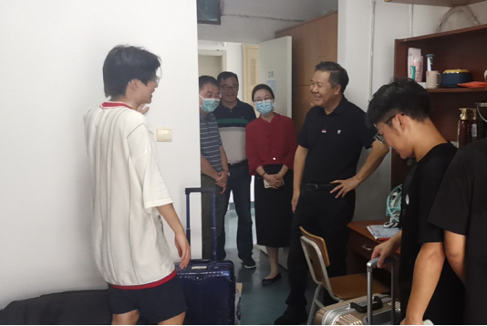 校党委书记朱传耿在仙林校区学生宿舍与新生亲切交流