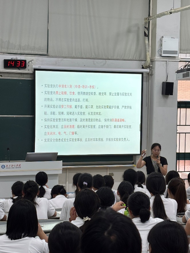 我校于2025年9月28日在教学实验楼阶一教室开展2025级新生实验室安全培训会。本次培训由体育科学研究院举办,旨在提高我校2025级新生实验室安全防范意识和应急处置能力,加强我校的实验室安全管理工作,运动健康学院全体2025级新生参加培训活动。