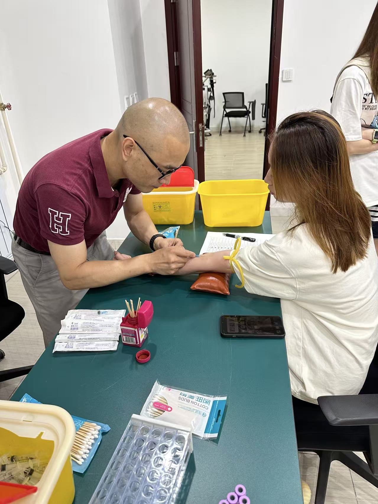 羽毛球队运动员接受血常规测试