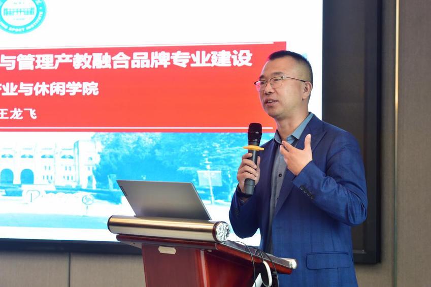 南京体育学院体育产业与休闲学院王龙飞院长作专业建设与国际合作办学报告