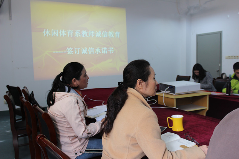 2015年11月10日,休闲体育系在教学楼101会议室召开全体党员大会,组织专题学习活动。全系党员及教职工参加了学习活动。