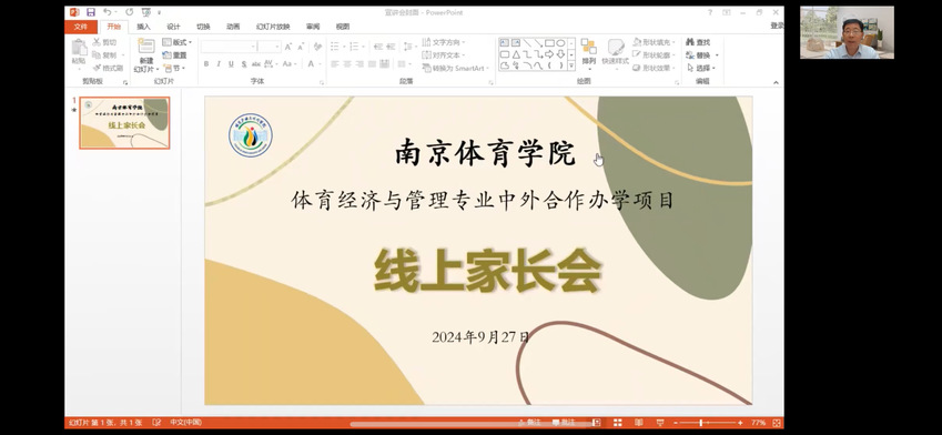 9月27日晚,体育产业与休闲学院召开中外合作办学项目线上家长会。体育产业与休闲学院党总支书记王进,体育产业与休闲学院院长郭修金,南京体育学院教务处副处长李强,体育产业与休闲学院党总支副书记陈志,体育产业与休闲学院副院长柏景岚,体育产业与休闲学院学工办主任唐佳、体育经济与管理系主任张建明、体育经济与管理系副主任王杉、中外合作项目专职秘书杨林、美国罗克福德大学驻华代表留学服务中心主任曾庆娟、美国罗克福德大学驻华代表教学教务主管胡恒、美国罗克福德大学驻华代表留学服务中心咨询顾问齐世成、美国罗克福德大学驻华代表学业导师吴相仪、中外合作办学项目22级、23级全体学生、家长及辅导员、班主任出席会议。会议由柏景岚主持。