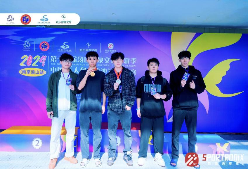 在院校组25米竞速潜游中,2022级邱浩天同学表现优异,凭借个人高超的技术水及比赛专注度,夺下该项目的冠军。杨硕、周骏遥、陈冠华分获该项目的第四、第五、第六名。在接下来的院校组25米竞速水面平游的项目中,蔡伟同学顶住压力,比赛过程中力度与美感并存,最终夺下此项目的亚军!刘宇阳、陈冠华同学分别取得该项目的第四名、第五名。这一成绩不仅是对他们刻苦训练的最好回报,也是对团队精神和体育精神的最好诠释。体育产业与休闲学院的优秀学生也担任了此次比赛的志愿者并深受好评。