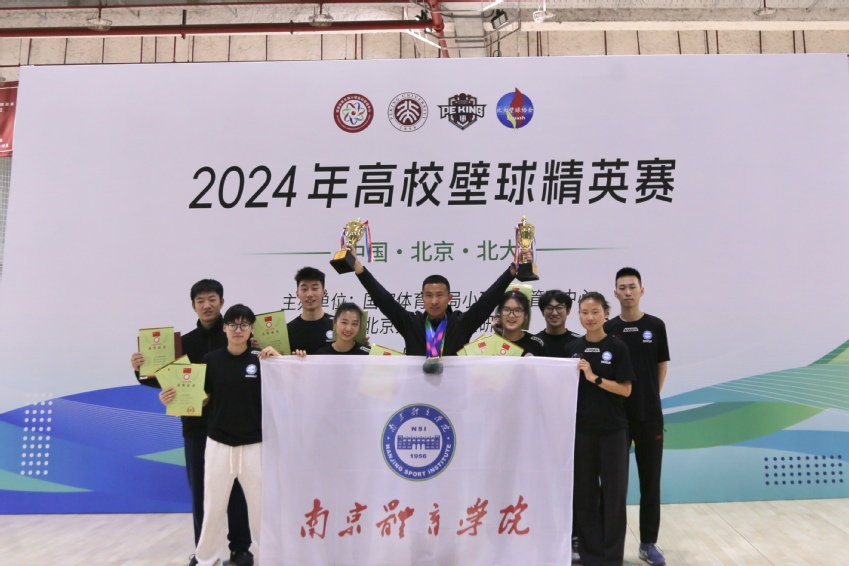 由国家体育总局小球中心主办的2024年全国高校壁球精英赛于2024年11月29日至12月1日在北京大学邱德拔体育馆壁球馆举行,本次比赛吸引了来自全国15所高校的壁球队参赛。经过两天激烈角逐,我校壁球队表现出色,荣获专业组男子团体冠军和专业组女子团体冠军;女运动员刘佳和男运动员任志强分别获得本次赛事的“最佳运动员”称号,教练员徐通获得“最佳教练员”称号。