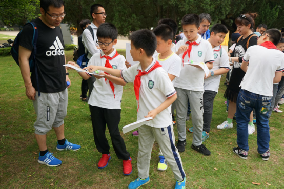 活动开始前,社团负责人骆丰恺、潘涛为长江路小学四(1)中队的学生们讲解活动内容与主要规则。