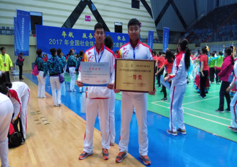 在甘肃兰州刚刚结束的“2017年全国社会体育指导员交流展示大赛”上,我校休闲体育系学生王钧达、熊浩天与江苏省其他队员合作,与来自全国26个省近700名社会体育指导员同台竞技,经过三天的激烈角逐,获得团体总分一等奖,王钧达、熊浩天分别获得知识竞赛三等奖及个人体育道德风尚奖。