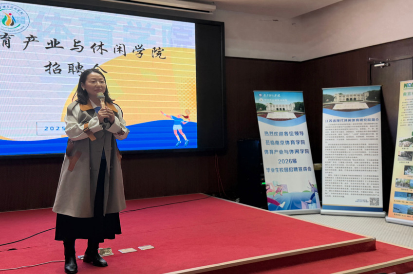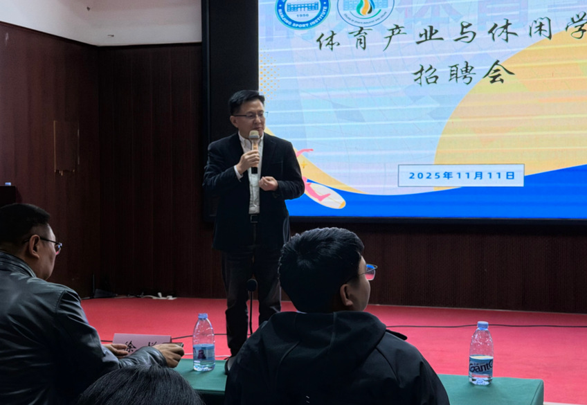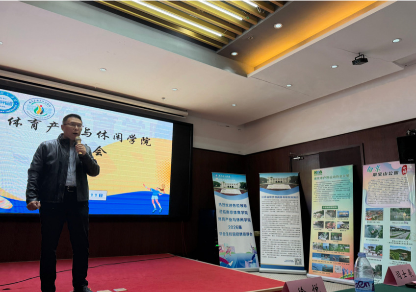 2025年11月11日中午,南京体育学院体育产业与休闲学院招聘会在南京转训中心隆重举行。本次活动特邀江苏省体育科学研究所《体育与科学》编辑部主任闫士展、南京聚宝山旅游产业发展有限公司党总支书记、董事长、总经理戴凡、江苏省现代休闲体育研究院执行院长徐悦、南京市户外运动协会秘书长朱良翠等多家体育行业专家提供岗位宣讲,助力2026届毕业生拓宽就业渠道,搭建就业平台,推动体育人才精准对接市场需求。