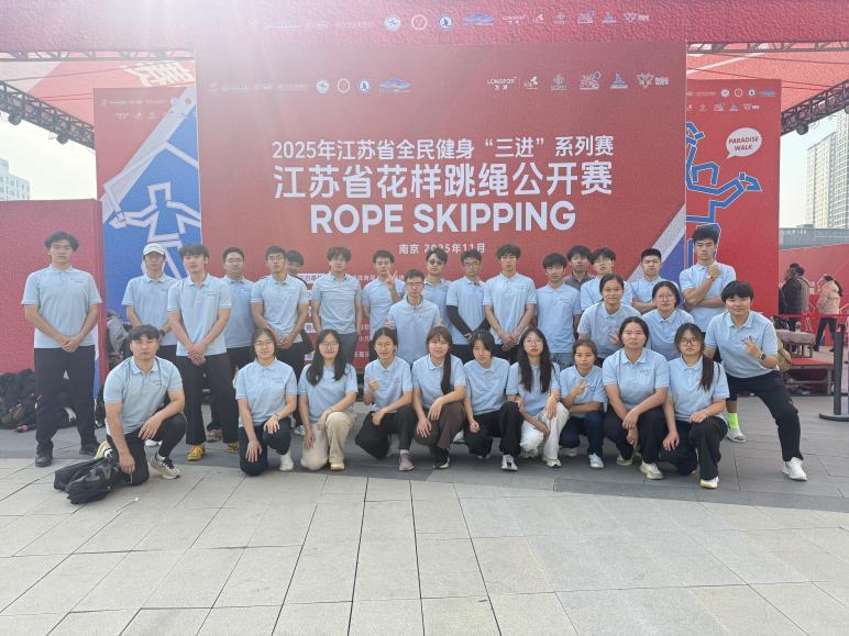 11月23日,2025年江苏省全民健身“三进”系列赛—江苏省花样跳绳公开赛在龙湖南京雨山天街热力开赛。南京体育学院体育产业与休闲学院选派31名学子组成代表队,在曹全军老师和王忆南老师的带队指导下征战赛场,凭借精湛技艺与顽强拼搏,斩获团体项目、个人项目共8金6银4铜的优异成绩,充分展现了南体学子的青春活力与竞技风采。