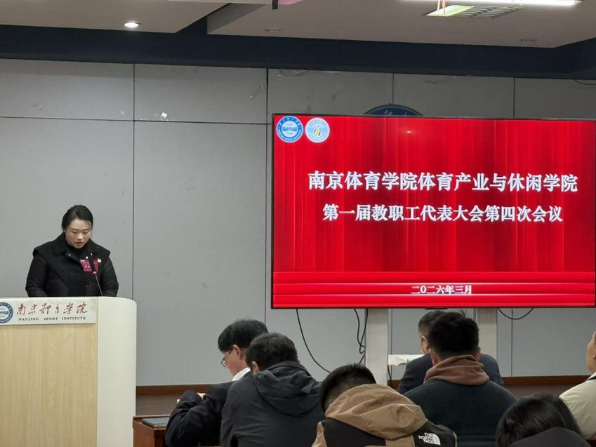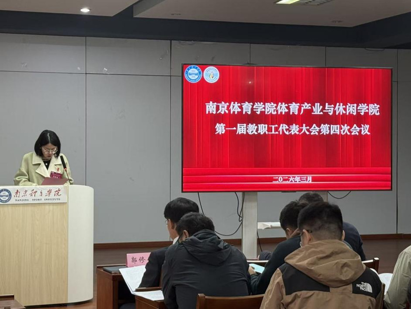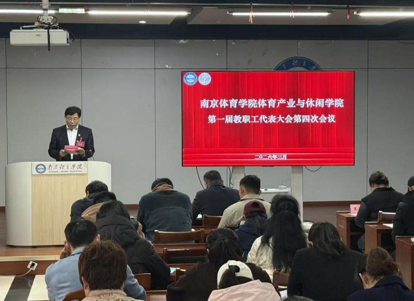 3月24日,南京体育学院体育产业与休闲学院第一届教职工代表大会第四次会议在大学生活动中心召开。本次大会学院党总支书记王进、院长郭修金、党总支副书记王珺君以及全体教师出席会议。会议由学院分工会主席闫燕琴主持。