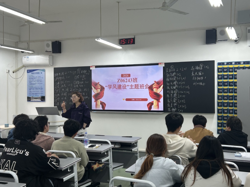 2026年4月1日Z06243班在仙林教学楼A103召开主题为“严守考勤纪律,筑牢学风根基”学风建设班会,旨在进一步营造“杜绝旷课,诚信求学”的班级学习氛围,强化同学们的自主学习意识,规范学习行为,树立良好班风学风,助力全体同学全面发展、高效成长。