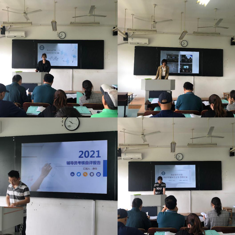 在述职阶段,辅导员依次结合自身实际情况,从思想政治教育和价值引领、党团和班级建设、学风建设等九大方面对一学年的工作进行了全面总结汇报。考核小组成员在听完汇报后秉着公平公正的原则对辅导员的工作进行了认真评议和测评。