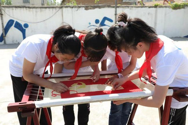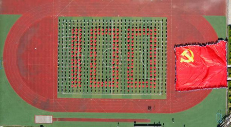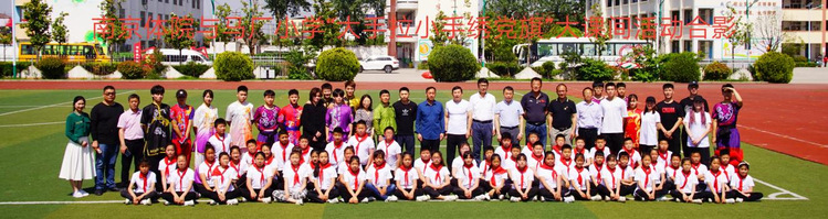 5月28日,南京体育学院体育产业与休闲学院、武术与艺术学院、江苏省现代休闲体育研究院、东南大学体育系、沭阳县教育局、沭阳县体育局在沭阳县马厂中心小学举行了一堂特殊的大课间活动,近千名小学生和南京体院的师生一起,大手拉小手共绣党旗。