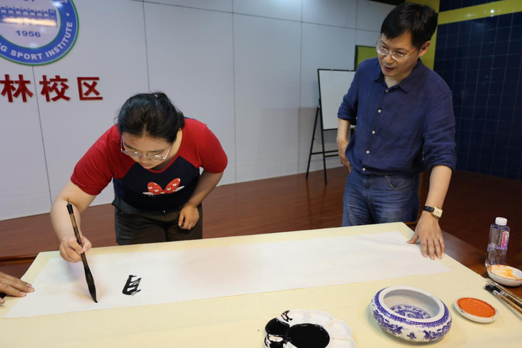近日,国家一级美术师南京大学艺术学硕士、第五届中国书法“兰亭奖”一等奖、全国第二届扇面展银奖、全国首届行书展三等奖、第四届江苏省书协副主席秘书长王卫军在仙林校区大学生活动中心为我院大学生开展了一堂生动活泼的艺术党课。讲座过程中,王卫军副主席首先从中国老一辈革命家的书法艺术特点进行介绍,并引导同学们如何品鉴、欣赏书法艺术,从纸张、笔墨、砚台等方面逐一介绍中国的传统文化,进而如何做到文化自信;在讲座现场,王老师与同学热烈互动,深入浅出普及中国的书法艺术知识。整个讲座过程同学们兴致高涨,并现场泼墨挥毫,王卫军老师及时给与点评,气氛活跃热烈,使同学们深切感受乐中国文化和中国书法艺术的魅力。