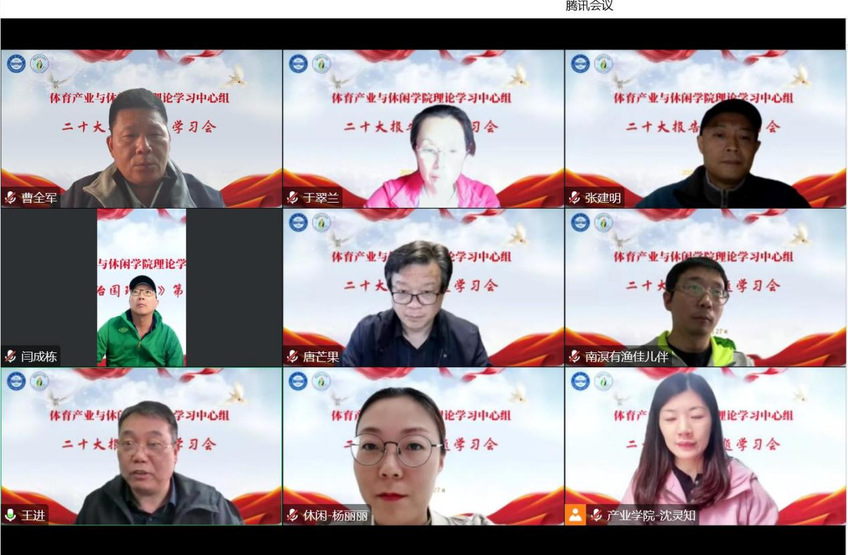 10月27日下午,体育产业与休闲学院理论学习中心组在线上召开党的二十大报告专题学习会,学院理论学习中心组成员参加学习,王进主持会议。