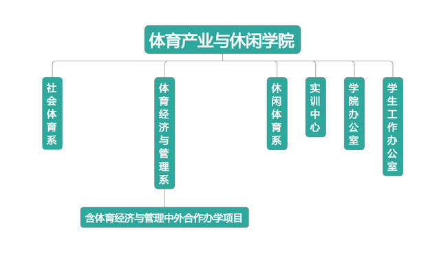 体育产业与休闲学院,下设社会体育系、体育经济与管理系、休闲体育系、实训中心、学院办公室及学生工作办公室,共计六个系(室),其中体育经济与管理中外合作办学项目隶属于体育经济与管理系。