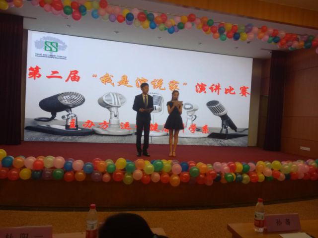 2016年12月15日晚6:30,由运动健康科学系主办的第二届”我是演说家”演讲比赛决赛于南京体育学院图书馆报告厅成功举行。比赛邀请了运动健康科学系副主任马林老师、实验室主任徐凯老师、辅导员助理孙蕃老师、2015--2016学年系学生会主席陶柳、副主席杜阳一同学担任评委。各班主任及全体大一大二同学参加了此次活动。在主持人李鑫和王振安宣布完比赛规则及相关细节后,伴随着热烈的掌声,本次演讲比赛正式开始。