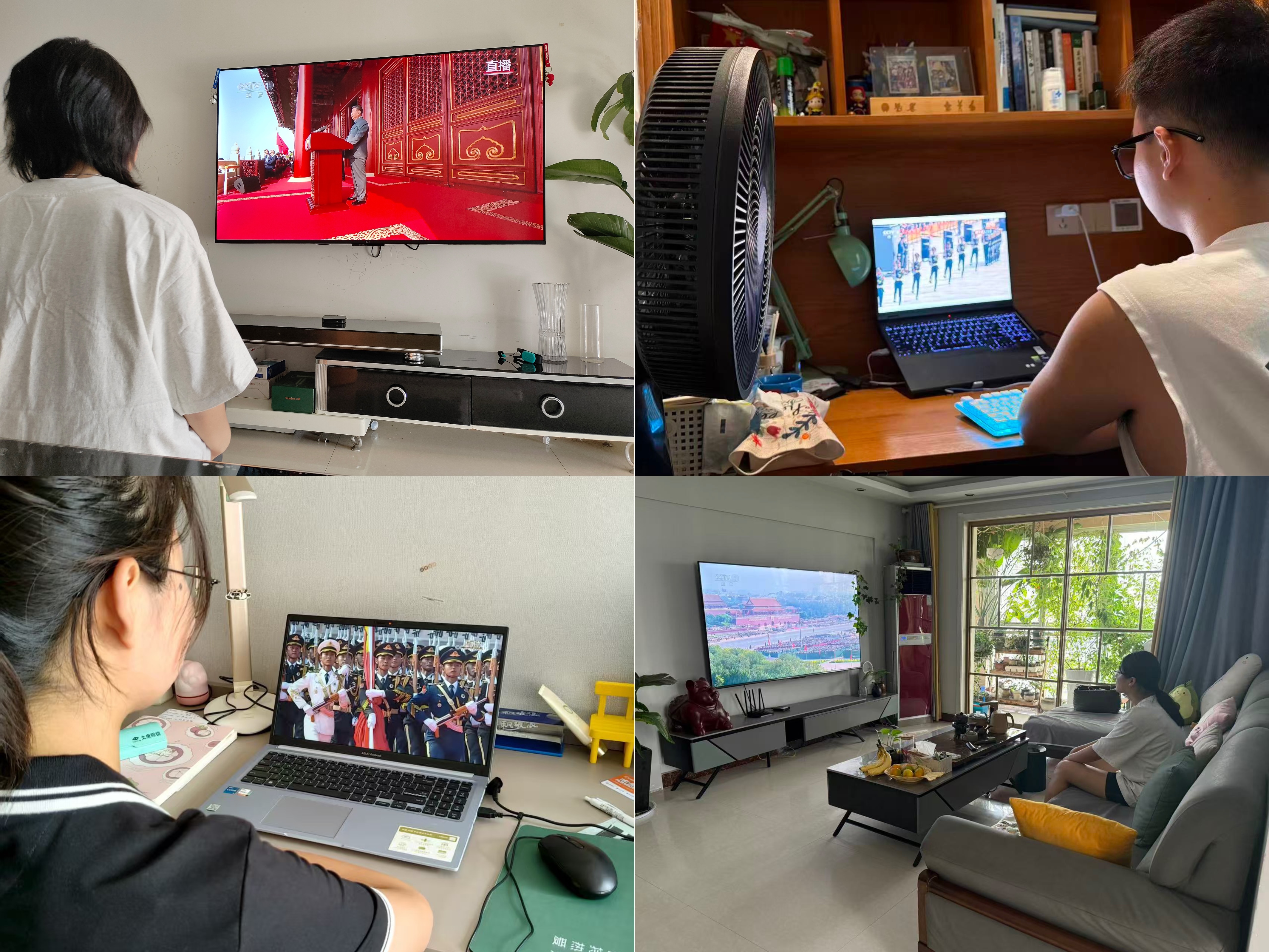 9月3日,学院组织全体学生通过电视、网络平台等多种方式集中观看纪念中国人民抗日战争暨世界反法西斯战争胜利80周年阅兵仪式盛况。屏幕前,同学们神情专注,感受受阅部队磅礴威武的气势与国之重器的震撼力量。观看结束后,同学们在线上交流观看感悟,撰写心得体会,有同学在心得中写道:“作为一名体院学子,我要把抗战精神转化为训练动力,以更强健的体魄、更优异的成绩为国争光。”