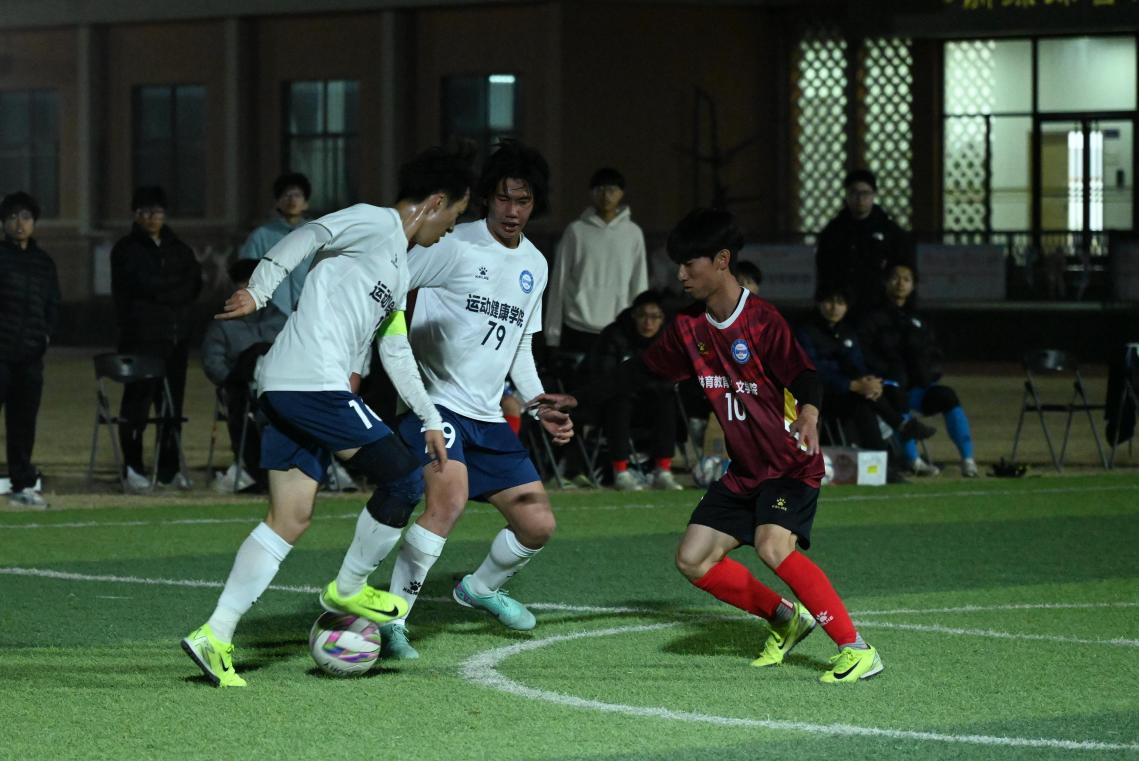 12月1日,男子组的比赛在绿茵场上激烈展开。运动健康学院开局便展现锐利攻势,率先破门得分。体育教育与人文学院随即展开有力反攻,连进两球反超比分。面对落后局面,男子组队员们沉着应战,通过耐心的传导配合寻找机会,终于在下半场把握住关键时机,一记精准射门将比分定格在2:2。这场平局来之不易,队员们场上相互呼应、积极协防的场面令人印象深刻。