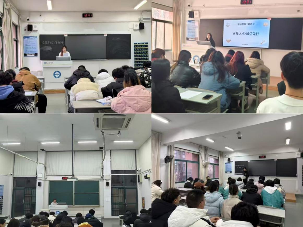 为实现诚信教育全覆盖、无死角,学院组织各年级有序召开诚信考试主题班会。其中,大一年级班会由辅导员马高曼主持,她紧扣新生适应期特点,结合《学生手册》及学校考试管理相关制度,通过剖析典型违纪作弊案例,直观讲解违规行为的严重后果与处分规定,引导新生深刻认识诚信考试的重要性,系好大学阶段诚信立身的“第一粒扣子”。针对大二、大三年级学生的学业发展需求,班会由各班班长牵头主持,结合高年级课程特点、学业规划与班级实际情况,重点解读诚信考试对专业提升、学业进阶及未来职业生涯发展的深远影响,提醒同学们摒弃侥幸心理,以真实成绩检验学习成效,用诚信品格护航成长之路。