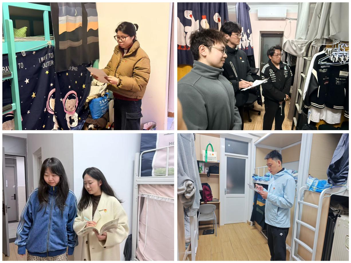 检查过程中,学生党员充分发挥先锋模范作用,主动亮明党员身份,以“一名党员就是一面旗帜”的责任意识,带领层长深入每一间宿舍,从环境卫生、物品收纳、安全设施等多个维度进行细致排查。针对检查中发现的卫生死角、物品摆放不规范及私拉电线等轻微安全隐患,检查小组当场向宿舍责任人下达《整改告知单》,明确整改要求与时限,并现场开展安全警示教育,引导学生树立“安全第一、预防为主”的思想意识,养成文明、整洁、规范的生活习惯。