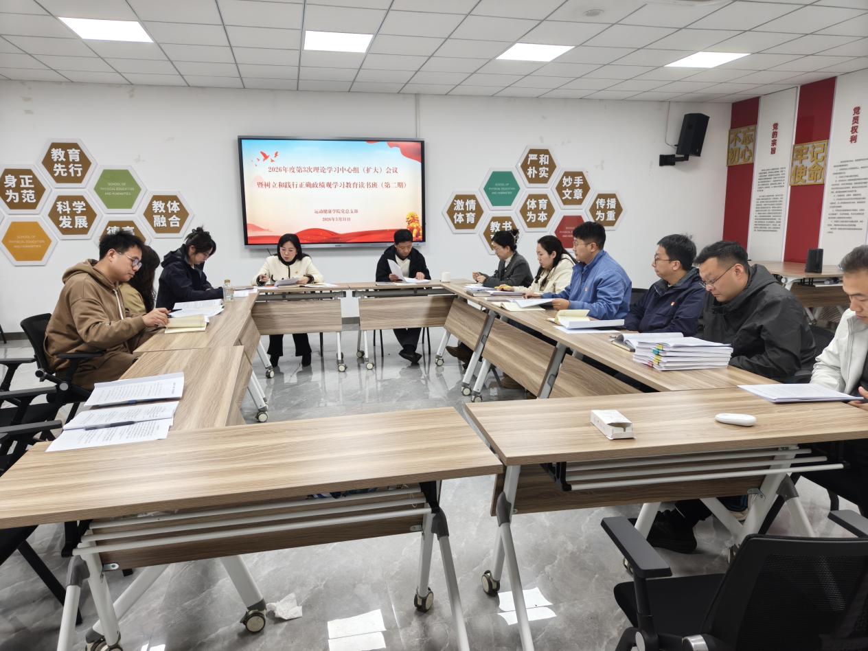 为深入贯彻落实中共中央关于树立和践行正确政绩观学习教育的部署要求,扎实推进学院党员干部思想建设,强化担当作为意识,2026年3月31日下午,运动健康学院党总支召开2026年第3次理论学习中心组(扩大)会议暨树立和践行正确政绩观学习教育读书班(第二期)。学院党总支理论学习中心组成员、各党支部书记、全体科级干部参会,会议由学院党总支书记阚妮妮主持。