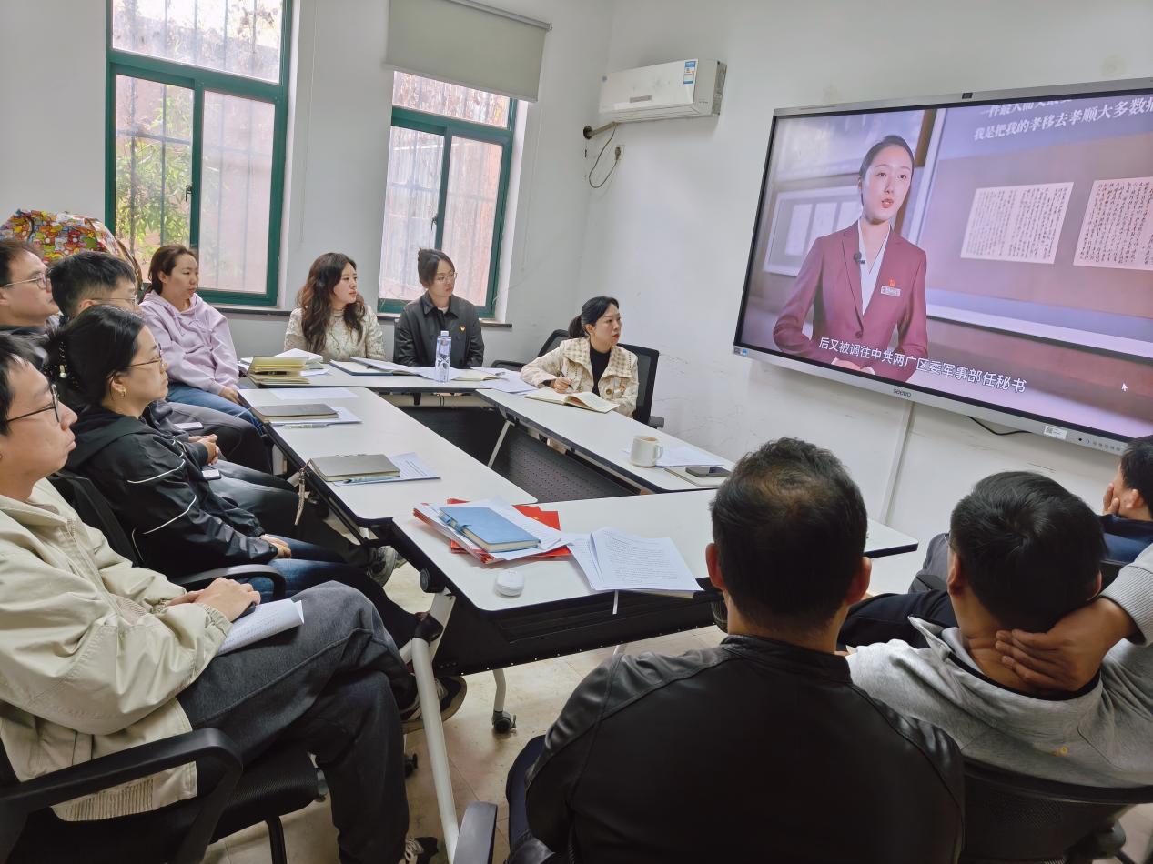 会上,全体与会人员集中学习了习近平总书记在二十届中央纪委五次全会上的重要讲话精神。阚妮妮传达了十四届省纪委六次全会、全省教育系统全面从严治党视频会议以及学校2026年全面从严治党工作会议精神,系统解读上级关于全面从严治党的最新部署与实践要求。她重点阐释了“两个仍然”的重大判断和“三个更加”的实践要求,引导党员干部持续增强自我革命的思想自觉和行动自觉,推动上级精神在学院落地见效。围绕贯彻落实会议精神,她提出四点要求:一是提高政治站位,以正确政绩观引领全面从严治党与教风学风建设,将政绩观教育融入日常管理与教育教学全过程,营造求真务实、真抓实干的良好氛围;二是坚持以案为鉴,通过警示教育推动师德师风与教风学风持续向好,运用典型案例开展剖析反思,做到警钟长鸣、防微杜渐;三是深化“党建+”融合机制,以党建品牌创建为抓手,探索党建工作与教学科研、人才培养等中心工作深度融合的新路径;四是压实政治责任,健全闭环落实机制,构建一级抓一级、层层抓落实的责任体系,确保各项任务落地见效。
