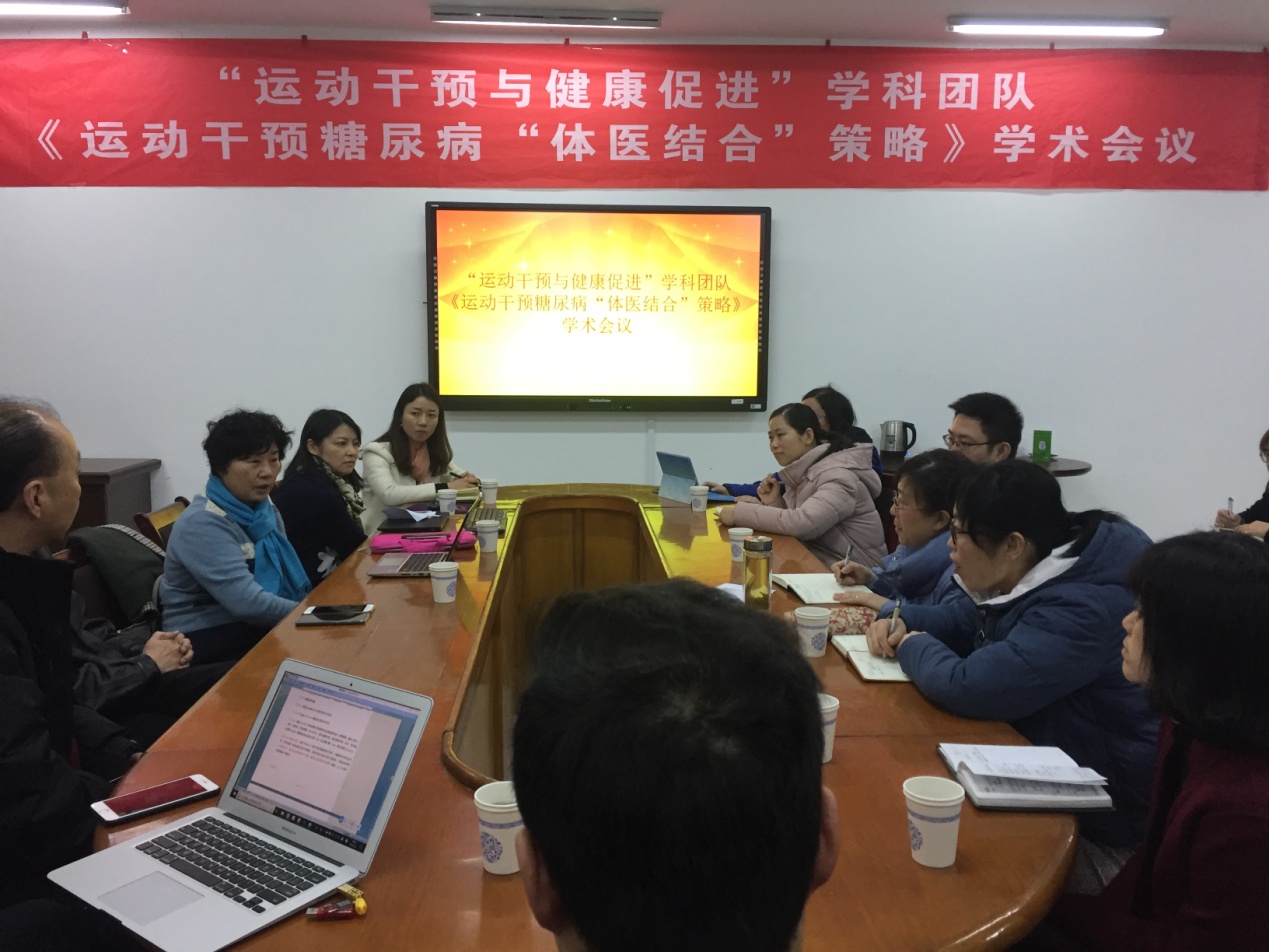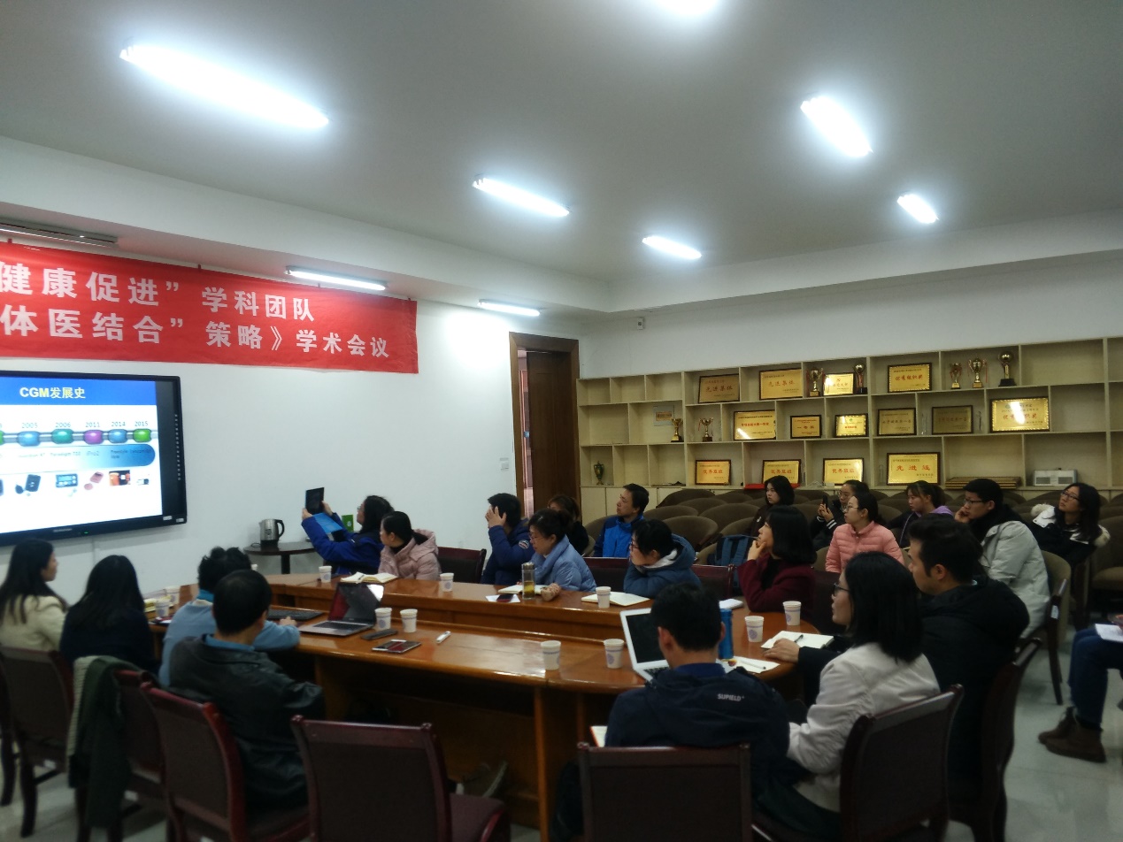 接着贾伟平院长就目前糖尿病监控技术的新进展做了精彩的报告,蔡主任、任教授也就运动干预糖尿病的信息和管理进行了讲解交流,给本团队未来科研提供了强有力的思路和支持;专家们还对今年两名团队成员申报相关糖尿病研究国家自然科学基金项目进行了辅导,并与本团队确定了今后研究的方向:1、加强运动干预糖尿病基础研究的合作和互补;2、为国家基层糖尿病防治管理提供运动干预研究;3、尽快进行合作挂牌,加强双方师生科研间的来往。