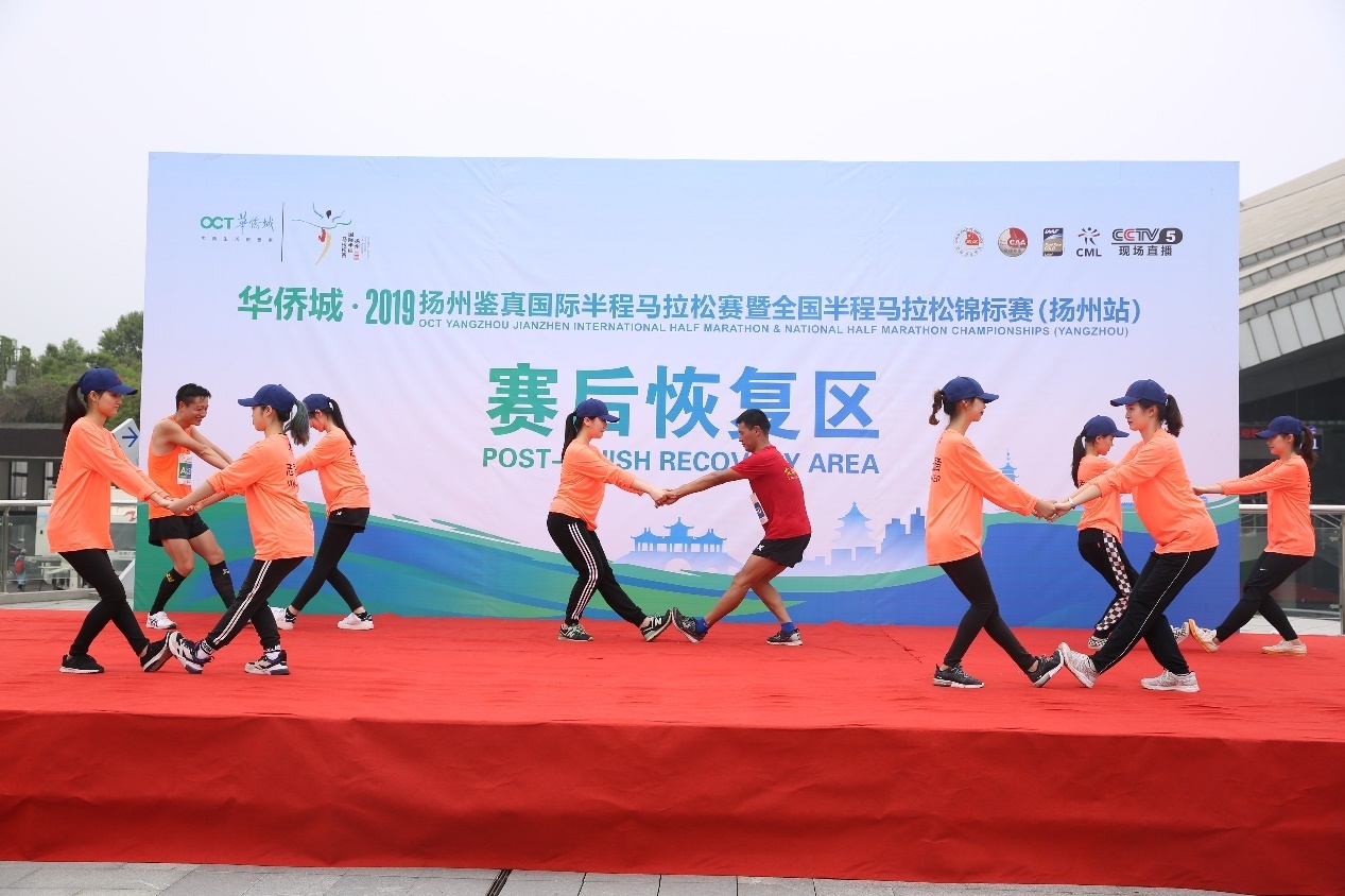 2019年4月21日上午,第十四届“扬州鉴真国际半程马拉松赛”于古都扬州鸣枪开赛。由运动健康学院孙飙教授带领的二百余名师生志愿者团队赶赴扬州展开赛后恢复服务。
