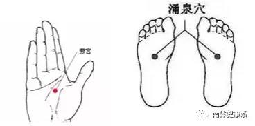以左手心劳宫穴摩擦右足心涌泉穴100次,再以右手心劳宫穴摩擦左足心涌泉穴100次。擦足心可以交通心肾,镇静安神,促进睡眠,并通过引