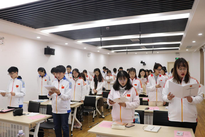 开班仪式在庄严的国歌声中拉开帷幕,全体人员起立奏唱国歌。