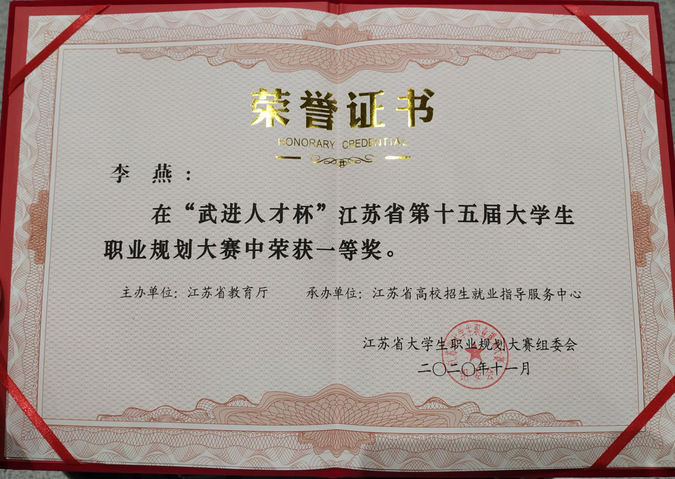 11月28日,由江苏省教育厅主办、省高校招生就业指导服务中心承办的“武进人才杯”江苏省第十五届大学生职业规划大赛总决赛在江苏常州落下帷幕。本次大赛中,我院康复治疗学专业李燕进入总决赛并获一等奖。