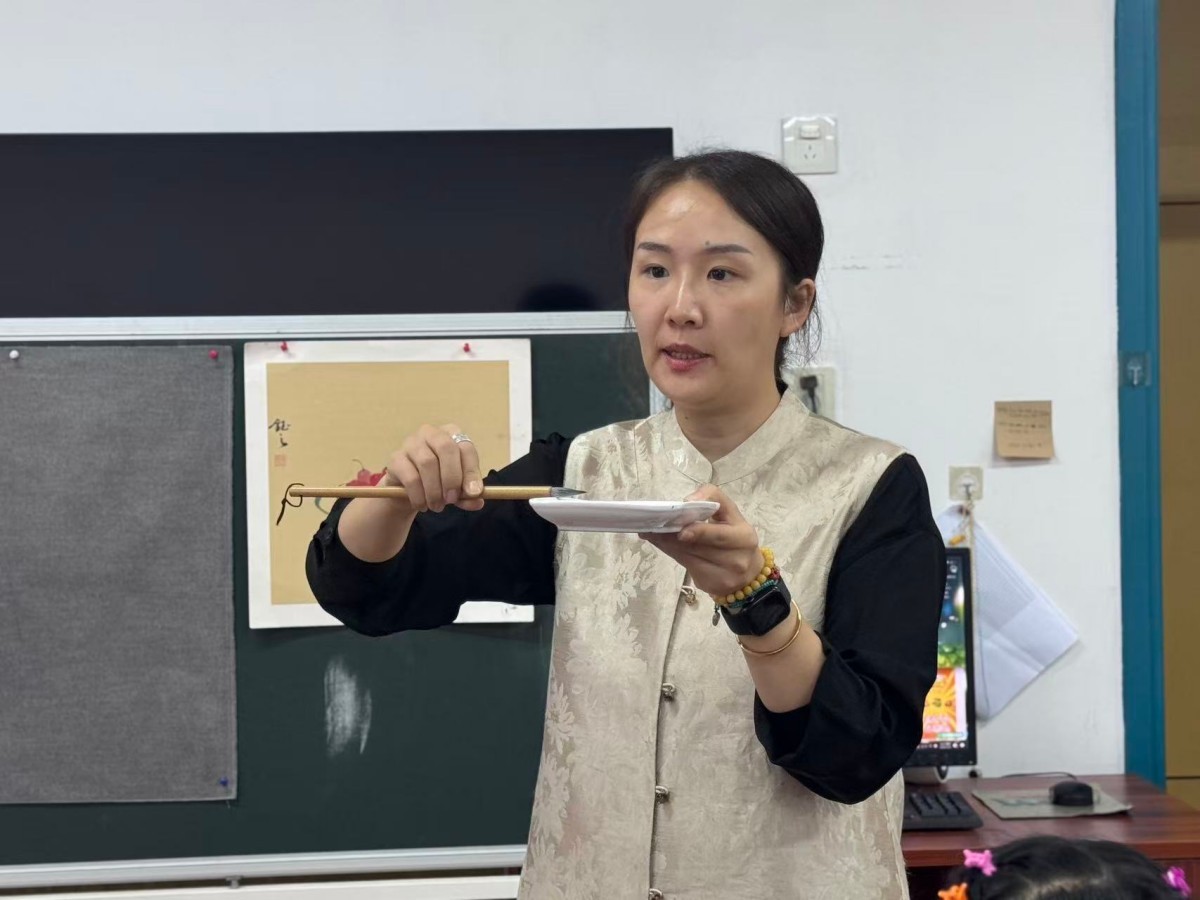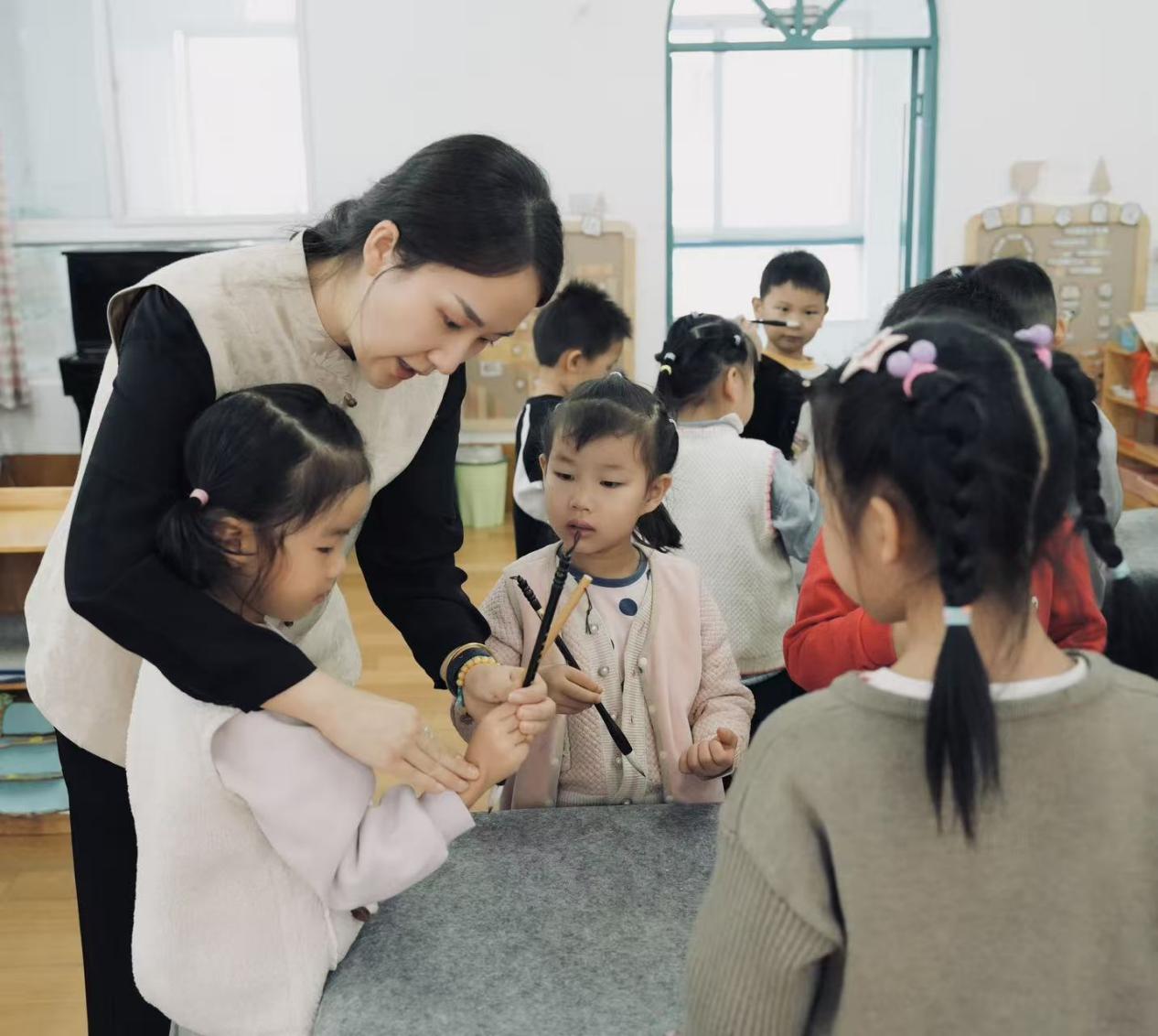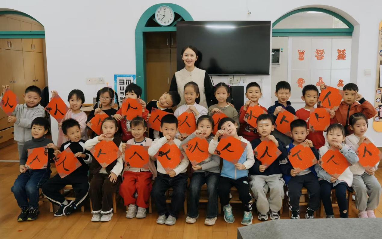 杨老师来到了大二班,教导孩子们学习基本的毛笔握持姿势和运笔技巧,还一笔一划地书写着寓意深远的“人”字,从中体验书法艺术的独特魅力和汉字结构的精妙之美。