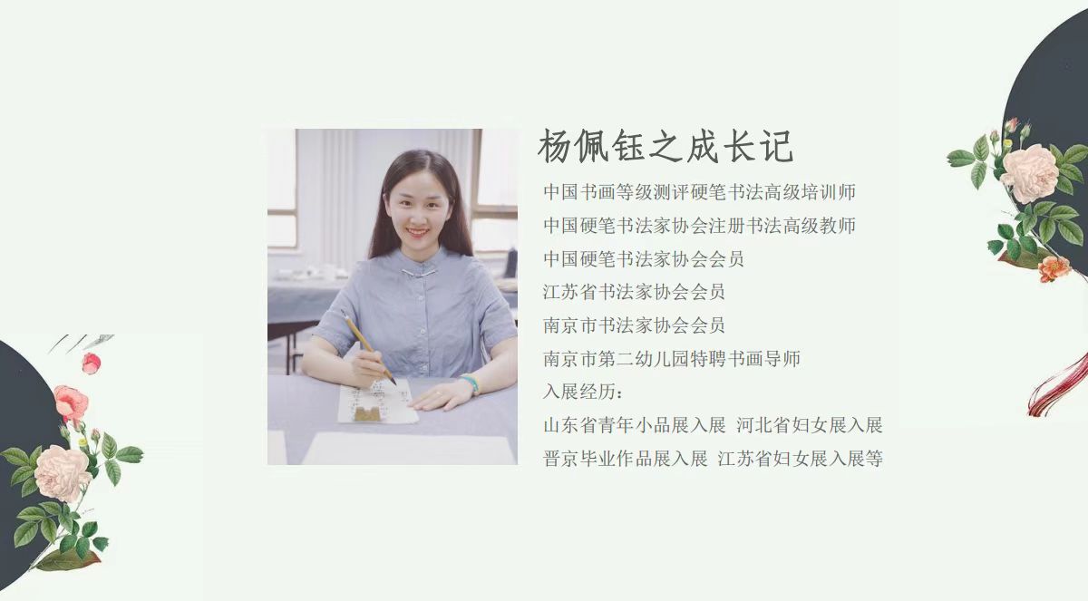 江苏省书法家协会会员,南京市书法家协会员,中国硬笔书法家协会会员,中国书法等级测评硬笔书法高级培训师,中国硬笔书法家协会注册书法高级教师,南京市第二幼儿园特聘书画导师杨佩钰老师。