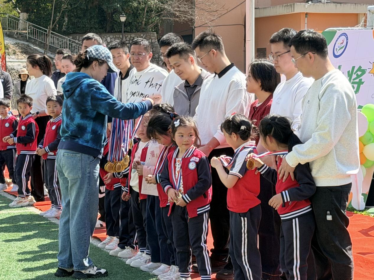 一块块精致的奖牌,闪耀着金色的光芒,它不仅是对孩子们勇敢拼搏、积极参与的肯定,更是对每一组亲子家庭默契配合、携手共进的嘉奖。有的孩子小心翼翼地抚摸着奖牌,骄傲地展示给身边的小伙伴;有的孩子紧紧依偎在爸爸妈妈身边,分享着这份专属的喜悦,温暖的画面定格在每一个人的心中。