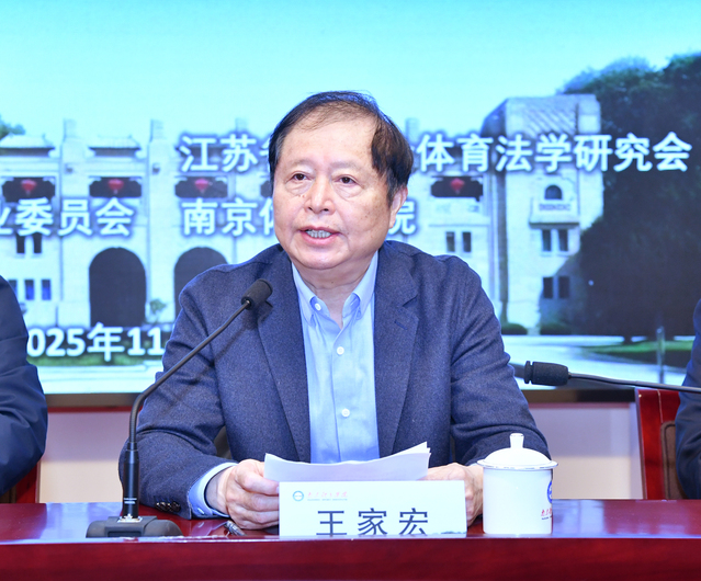 王家宏(中国法学会体育法学研究会副会长、江苏省体育科学学会体育法学专业委员会主任):开幕式致辞