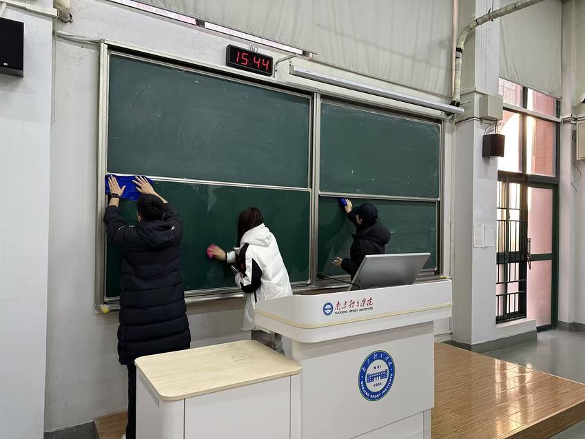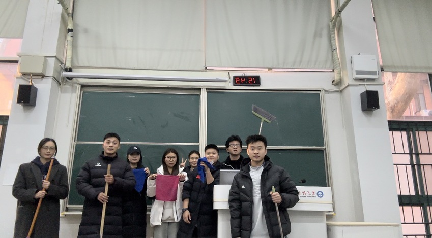 针对公共教室课桌涂鸦、污渍等问题,专硕二班入党积极分子开展了“课桌文化”清除行动。12月5日下午,由殷梦婷、陈亮带队,10名学员参与,对一号教学楼阶二、阶三教室进行了专项清洁。活动实行分组协作、流程化管理:工具组负责物资准备与回收,清洁组利用橡皮、小刀等工具细心清除课桌涂鸦与顽固污渍,并同步完成黑板擦拭、地面清扫等任务;收尾组统筹验收,确保清洁质量。通过精细化分工与闭环管理,教室环境得到全面改善,学员们在劳动中强化了责任意识与协作能力,践行了爱护公物、服务校园的承诺。