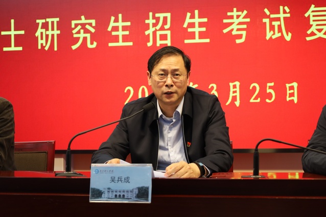 3月25日下午,我校召开2026年硕士研究生招生考试复试考务工作会议,校党委副书记、校长吴兵成出席会议并讲话。校纪委相关负责同志以及全体考务人员参加了会议。会议由校党委常委、副校长陈爱国主持。