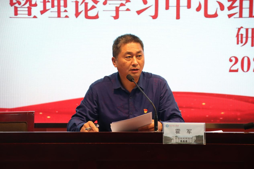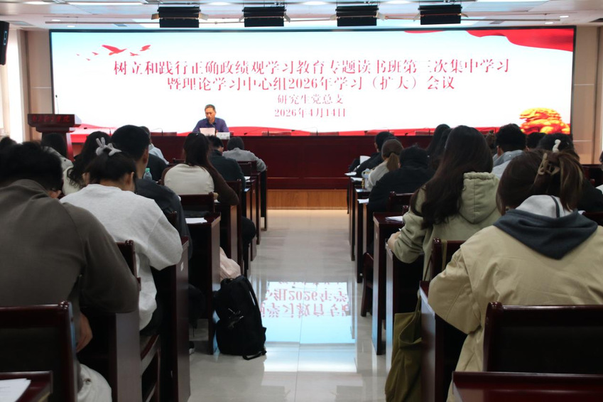 4月14日上午,校研究生党总支在行政楼101会议室召开树立和践行正确政绩观学习教育专题读书班第三次集中学习暨理论学习中心组2026年第六次学习(扩大)会。会议由党总支副书记霍军主持,教工党支部、研究生党支部全体党员参加会议。