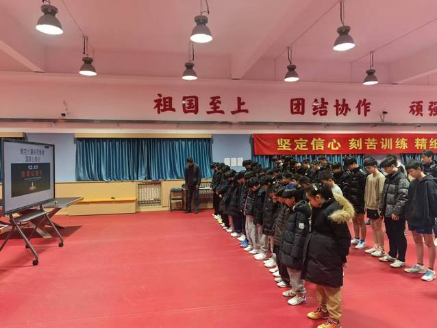 为响应学校党委关于开展南京大屠杀死难者国家公祭日学习教育活动的部署要求,悼念南京大屠杀死难者和所有惨遭日本侵略者杀戮的死难同胞,缅怀革命先烈与民族英雄,厚植教练员、运动员的爱国主义精神,12月13日上午,乒羽学院乒乓球队组织全体在校教练员、运动员开展南京大屠杀死难者国家公祭日学习教育活动。