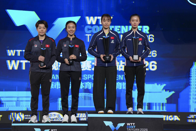 4月12日,2026年WTT常规挑战赛太原站女子双打决赛圆满落幕,我校乒乓球运动员石洵瑶与搭档韩菲儿并肩作战,以3比1的总比分击败中国香港组合杜凯琹/吴咏琳,成功摘得女双冠军。