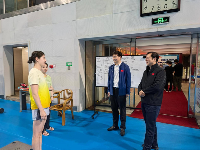 随后,吴兵成与我校游泳运动员张雨霏、王艺静、教练员黄光裕以及科医保障人员进行了亲切交谈,仔细询问了他们近期的训练备战、身体与医疗、困难需求等,并鼓励他们在决胜决战阶段一定要咬定目标、坚定信心、全力以赴,同时也要关注自身身体情况、防伤防病,力争在即将到来的亚洲游泳锦标赛及十五届全运会中再创佳绩,为国家游泳队及江苏体育代表团做出更大贡献。