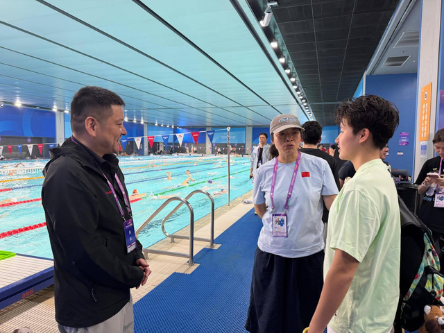 骆小松来到四川成都东安湖体育中心游泳跳水馆,观摩了全国青年游泳锦标赛2天的比赛。比赛间歇,骆小松从看台来到热身池与队伍休息区,与我校国家游泳队运动员吕沁遥、教练员范春华进行了亲切交谈,详细了解吕沁遥在国家队训练备战情况、比赛状态以及教练组目前遇到的困难和需求等,代表校领导表达了对所有参赛运动员、教练员及工作人员的关怀与慰问,勉励他们要继续锚定“入选亚运、青奥”目标,努力拼搏,不断奋斗,争取在十六届全运会周期伊始站好位、起好步、开好局,祝愿大家在2026年一类赛二类赛及国外大赛上创造佳绩,为国、为省、为南京体院在游泳项目上做出更大贡献。